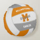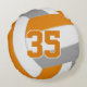 Cette équipe cool couleurs volleyball ronde lancer oreiller caractéristiques de l'image d'un réaliste look orange, gris et blanc volleyball sur lequel vous pouvez customiser le nom du joueur, monogramme ou lettre de variété, le nom de l'équipe et de la mascotte sur le devant et le numéro de maillot sur le dos - par katz_d_zynes