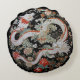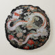 Cet oreiller rond est doté d'une paire de dragons blancs de style asiatique entourés de fleurs sur un arrière - plan noir.