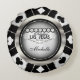 Coussins Ronds Personnalisez la puce de poker argent, noir et bla