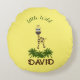 Coussin rond avec petite girafe mignonne sur arrière - plan jaune