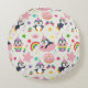 Almofada redonda com ilustração fofa de pinguim unicórnio no mundo dos sonhos.
