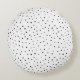 Coussin rond monogramme élégant et moderne avec motif pois noir avec étiquette verte à la menthe. Ce coussin minimaliste personnalisé sera parfait comme un cadeau.