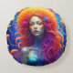 Portrait d'une fille de Atlantis Round Cushion. Un beau coussin aux couleurs vives pour égayer une chambre à coucher au style Atlantis.