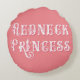Coussin d'accent rond amusant pour les filles de la campagne qui sont "pourcentages". Texte Redneck Princess en police blanche fantaisie sur arrière - plan rose.