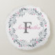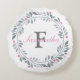 Monogrammez cet accent de coussin rond à motif floral gris et rose avec votre initiale et votre nom. Idée cadeau géniale pour demoiselle d'honneur, amis, famille ou achetez-en un pour vous-même.