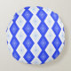Bleu et noir, rond. Se glisse dernière le dos pour le soutenir. La qualité d'impression est excellente.