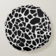 Un coussin rond à rayures de girafe noir et blanc tendance avec un ruban rose girly attaché dans un joli arc. Personnalisez cet élégant design poster de animal en ajoutant votre nom. A l'envers, on retrouve un motif de girafe design. Image imprimée plate, pas l'arc réel.