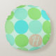 Coussins Ronds Turquoise Bleu Vert & Cercles Orange Monogramme