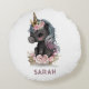 Coussins Ronds Unicorne noire mignonne avec Fleurs Aquarelle Unic