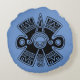 Bleu et noir, rond. Se glisse dernière le dos pour le soutenir. La qualité d'impression est excellente.