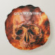 Coussins Ronds Vibes éffrayantes. Crâne flamboyant dans l'espace