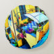 Bleu et noir, rond. Se glisse dernière le dos pour le soutenir. La qualité d'impression est excellente.