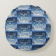 Bleu et noir, rond. Se glisse dernière le dos pour le soutenir. La qualité d'impression est excellente.