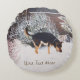 Coussins Ronds Winter snow scene with cute black and tan dog