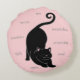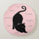 Coussins Ronds Yoga chat noir et texte modifiable sur rond rose