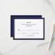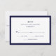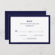 Ces cartes RSVP mariage élégantes et élégantes présentent du texte bleu marine chic sur un arrière - plan blanc, bordé de marine classique.