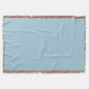 A light blue blanket with a subtle diamond pattern and beige fringe edges is shown. The image features both horizontal and vertical views.