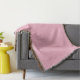 A pink woven blanket with a subtle pattern is shown in two orientations. It features fringed edges, conveying a cozy and warm feel.