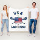 Couverture d'ouatine de lacrosse des Etats-Unis. Perfectionnez pour montrer votre fierté dans la lacrosse des USA en obtenant confortable à la maison ou à un jeu relâché frais. Conception de bouclier avec le drapeau américain et les bâtons croisés de lacrosse. Cadeaux et vitesse de lacrosse des Etats-Unis. Vous pouvez même personnaliser la couleur d'arrière - plan de votre couverture. Cliquez sur simplement le bouton de "personnaliser" pour choisir n'importe quelle couleur que vous voudriez.