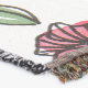 Fleurs et feuilles délicats faits avec des formes aquarelles et des détails encrés. Palette rose et verte.