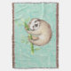 Un adorable graphique en aquarelle présente un parfum souriant accroché à une branche sur aqua et l'arrière - plan de point or
