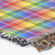 Jetez une couverture avec un à damiers plaid coloré dans les couleurs de l'arc-en-ciel, avec des reflets noirs et blancs. Un motif original Plaidwerx.