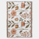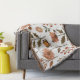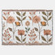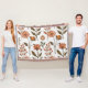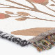 L'image montre un motif atypique de fleurs stylisées en tons d'orange et de brun chauds, entouré de feuilles vertes et de branches tendre. La répétition harmonieuse des éléments rayonne un climat d'automne calme qui transmet la chaleur et la nature. Il crée un sentiment de sécurité et d'équilibre esthétique.