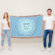 Cette jolie, personnalisée couverture de jet de maison de plage a un motif en arête de poisson bleu-et-blanc. Le motif audacieux de coquille va voir stylisé par art déco classique, accomplit des étoiles de mer et une ancre blanche faible au milieu. Dans une police vintage des années 1920, ajoutez facilement votre nom de famille. La "Chambre de plage" même des mots sont, au cas où vous voudriez ajouter "Chambre de lac," la "maison d'été" personnalisable ou tous les autres mots que vous voudriez.