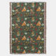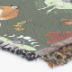 Renard rouge, lapin, lune, martre de pin aux feuilles d'automne, citrouilles, fleurs et glands en toile de fond vert profond