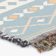 Aztec motifs mélangés motif en orange clair et couleur crème claire et foncée détail sur un arrière - plan bleu poudre. H = motif horizontal.