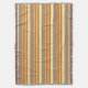 Bandes d'auvent modernes classiques du milieu du siècle, aux couleurs douces et mélangées, avec une bande d'accent motif de treillis central, dans des tonalités chaudes de terre neutres de terre cuite, marron mocha, crème au beurre jaune et rouille