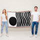 Cette couverture de lancer a Bauhaus design de lignes ondulées et cercles en noir sur un champ de blanc.