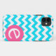 Les rayures élégantes de chevron de concepteur dans le bleu comporte le monogramme initial en cercle de roses indien pour votre iPhone. Cliquez sur la PERSONNALISER IL bouton pour changer le texte, la couleur, la taille, et la position pour personnaliser votre couverture de coque iphone. Entrez en contact avec les créations de papier de partie pour une couleur différente combinée ou si vous avez besoin d'aide.