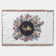 L'illustration est faite d'aquarelles et de gouache sur papier. Indigo, ocre et orange feuillage et fleurs avec un bonjour doré écrit à la main au milieu.