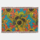 Bouquet de tournesol dessiné à la main, feuilles d'automne bleuets et mûres et coléoptères