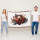 Une magnifique couverture jetée florale sombre avec des fleurs de bourgogne, marron, bleu foncé, violet, corail et blanc.
