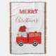 Une jolie illustration d'un camion de pompier rouge portant un chapeau de Père Noël et décoré de lumières de Noël. L'adorable machine à feu rouge se précipite pour éteindre un feu. Un cadeau parfait pour n'importe qui et n'importe quel âge. Un véhicule d'urgence favori depuis toujours.