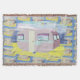 Camper rose mignon sur le dessin de l'art numérique de plage pour les amateurs de vie de voyage. Couleur arrière - plan personnalisée.