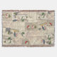 Des filles en manteaux d'hiver célèbrent la fête avec leur propre petit sapin de Noël et des cadeaux à l'intérieur d'un igloo gardé par des anges ; un garçon et une fille ouvrent des cadeaux sous le sapin de Noël et trois filles frappent à une grande porte verte, des cadeaux et un cochon à la main. Illustrations vintage de l'illustrateur pour enfants P. Ebner, issues de cartes postales françaises du début des années 1900. Des messages manuscrits en encre bleue et noire composent le reste du design.