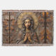 "This striking design presents a portrait of the Virgin Mary as a detailed wood carving or relief sculpture, rendered in rich, warm brown and reddish-brown tones. She is depicted with a tranquil, contemplative expression, hands clasped in prayer, and is framed by a rustic, textured halo. The rough, earthy texture of the wood grain provides a powerful sense of ancient, grounded spirituality. This design is highly suitable for products with a rustic, spiritual, or devotional theme. Imagine it on wooden plaques, religious art prints, handcrafted items, or home decor that evokes a traditional, artisan aesthetic."