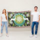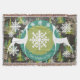 Belle couverture de Noël de Noël offre un ciel nocturne avec des petites étoiles scintillantes, des arbres à feuillage persistant, des flocons de neige blancs, un anneau de turquoise solide avec quelques flocons de neige blancs, et un centre vert avec de minuscules pois blancs. Deux silhouettes de cerfs blancs ornent ce joli tableau de vacances et il y a un espace que vous pouvez facilement personnaliser avec votre nom de famille.