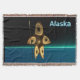 Image fractale brune suggérant un chasseur inuit très stylisé, portant des vêtements traditionnels en fourrure, tenant un harpon avec une tête d'ivoire. L'image est superposée à un arrière - plan représentant l'hiver polaire sombre. Le texte "Alaska" apparaît en bleu et blanc brillant.