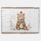 "This adorable illustration features a cheerful brown teddy bear wearing a festive red and white Santa hat and a cozy striped scarf. The bear has rosy cheeks and a soft, plush look, making it incredibly inviting. This charming graphic is perfect for children's Christmas apparel, holiday cards, ornaments, cozy blankets, or any product celebrating the sweet and simple joys of the holiday season."