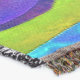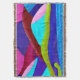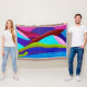 Paysage abstrait coloré de collines et d'un océan aux couleurs rose, violet, bleu, vert et cyan.