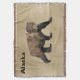 Comprend une peinture numérique d'un ours Kodiak sur un parchemin neutre, ou vieux papier, arrière - plan. Le texte personnalisable "Alaska" apparaît également. L'Ours de Kodiak (Ursus arctos middendorffi), une sous-espèce de l'ours brun, ou grizzli, est le plus grand ours du monde. Un mâle adulte peut mesurer plus de 10 mètres de haut lorsqu'il est debout sur ses pattes postérieures et peser plus de 1500 livres - un spectacle à voir. Un ours du zoo de Bismarck, dans le Dakota du Nord, aurait pesé jusqu'à 2 400 livres. Les ours vivent sur les îles de l'archipel Kodiak de l'Alaska. Aujourd'hui, il y a environ 3500 ours kodiak et leur nombre augmente en raison de l'état généralement excellent de leur habitat, y compris un poing suffisant pour se nourrir. Ils sont appelés "takuka-aq" en Alutiiq, la langue maternelle du peuple dans cette région. On pense que les ours y ont été isolés depuis la fin de la dernière ère glaciaire, il y a plus de 12 000 ans. Bien qu'ils soient le plus grand carnivore terrestre leur régime alimentaire comprend de grandes quantités d'herbe, d'autres plantes et des baies. Aujourd'hui, il y a environ 3500 ours kodiak et leur nombre augmente en raison de l'état généralement excellent de leur habitat, y compris un nombre suffisant de poissons à manger. En raison de l'abondance des ressources alimentaires, les ours Kodiak ont une aire de répartition plus petite que les autres ours bruns et n'ont pas besoin de défendre les territoires. Les Alutiiq chassaient les ours pour leur nourriture, leurs vêtements et leurs outils. Des flèches, des lances et beaucoup de courage étaient nécessaires pour la chasse. Les têtes d'ours étaient généralement laissées dans le champ comme un signe de respect de l'esprit des ours.