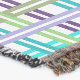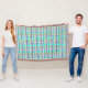 Cette couverture à jetons a un design Art Déco d'un plaid composé de deux nuances de turquoise, deux nuances de violet et deux nuances de vert.