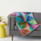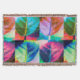 L'oeuvre originale et abstraite de ZoeSPEAK sur cette Throw Blanket a commencé comme une photographie originale d'une feuille d'un plante de raisin de mer. Le design explore la variété de combinaisons de couleurs provenant des zones lumineuses et ombragées de la feuille lisse, presque ovale, et de l'arrière - plan. On y trouve des rouges vifs, des roses, des lavandes, de l'aqua et des bleus foncés, des verts oranges et foncés et clairs. Les veines et la tige de la feuille ajoutent dimension et couleurs.