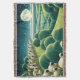 A flock of sheep roams across rolling hills under a starry night sky, with a bright full moon illuminating the landscape. The scene captures the tranquility of the countryside, with lush, green fields and neatly arranged trees.