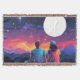 Une belle peinture numérique d'un couple assis sur un toit la nuit, regardant les étoiles. Le ciel est rempli d'étoiles de toutes les couleurs, et la Voie lactée est visible au loin. Le couple est assis l'un près de l'autre, et ils ont l'air de profiter de la compagnie l'un de l'autre et de la beauté du ciel nocturne.