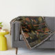 Sophisticated mid-century geometric pattern blanket featuring layered circles, arches, triangles, and rectangles in forest green, burnt orange, ochre, and cream on a black background. Rich textures and retro-modern shapes create a bold design ideal for Bauhaus lovers, vintage décor fans, and anyone drawn to moody modern style.